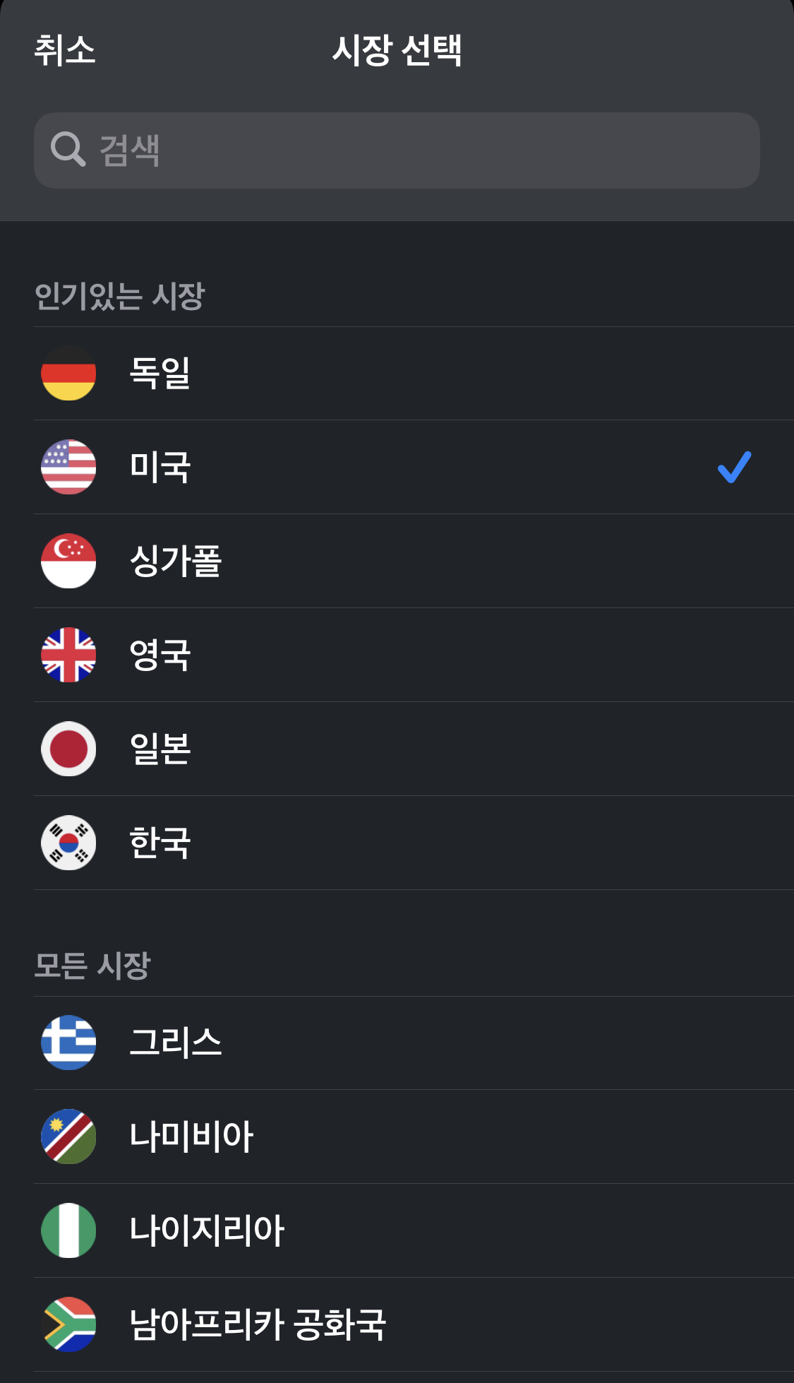 실시간으로 독일, 미국, 싱가폴, 영국, 일본, 한국 을 넘어서 전세계의 모든 시장을 확인할 수 있네요.